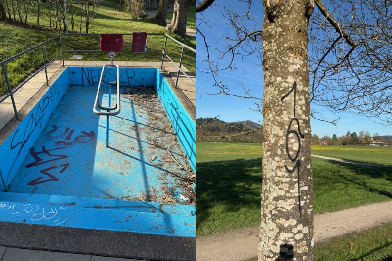 Unbekannte haben am Spielplatz Giersberg mit Graffiti und Aufklebern einen erheblichen Sachschaden verursacht. Dabei wurden das Kneippbecken, Sitzbänke, Hinweistafeln sowie mehrere Spielgeräte großflächig beschmiert und beklebt.Die Gemeinde Kirchzarten verurteilt diesen Vandalismus auf das Schärfste und zeigt sich tief enttäuscht über die mutwillige Zerstörung öffentlicher Einrichtungen, die der Allgemeinheit – insbesondere Familien und Kindern – dienen. Der entstandene Schaden belastet nicht nur den Gemeindehaushalt, sondern beeinträchtigt auch die Aufenthaltsqualität des beliebten Naherholungsbereichs erheblich.
